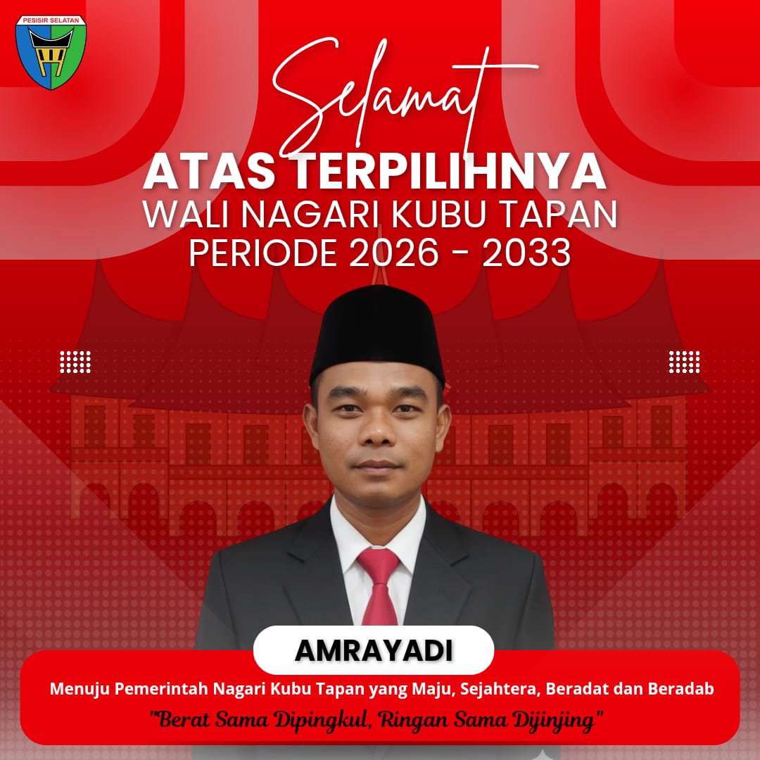 Pessel – Amriadi Wali Nagari Terpilih Kubu Tapan menyampaikan ucapan terimakasih Kepada istri, keluarga, masyarakat, tokoh masyarakat dan tim pemenangan atas kepercayaan dan dukungan, semoga kepercayaan yang diberikan kami akan menjalankan dengan amanah dengan baik dan membawa kemajuan untuk masyarakat KubuTapan, Pesisir Selatan (Pessel) Sumatera Barat.
