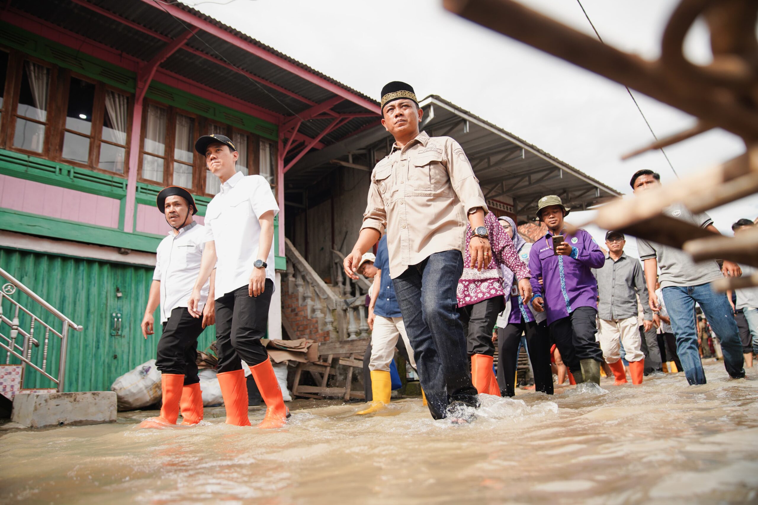 OKI- Sepulang mengikuti rangkaian retret (pembekalan) kepala daerah di Magelang, Bupati Ogan Komering Ilir (OKI), H. Muchendi dan Wakil Bupati Supriyanto langsung tancap gas meninjau warga terdampak banjir di Desa Rantai Durian Asli Kecamatan Lempuing Jaya, Minggu, (2/3).