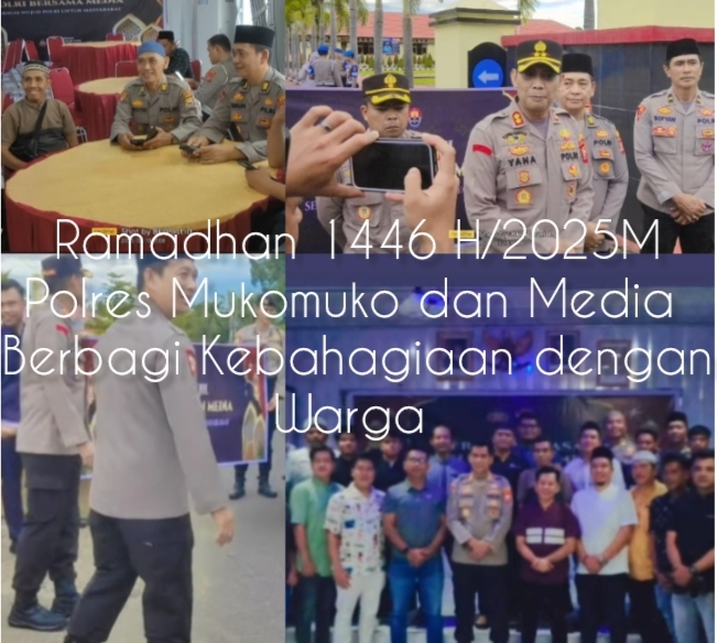 Mukomuko – Dalam suasana Bulan suci Ramadan 1446 H, Polri menunjukkan kepedulian terhadap masyarakat dengan menyelenggarakan kegiatan buka puasa bersama dengan media secara serentak di seluruh wilayah Indonesia. Di Kabupaten Mukomuko, Polres Mukomuko juga menjalankan kegiatan ini dengan membagikan takjil kepada masyarakat yang melintas di depan Mapolres Mukomuko.