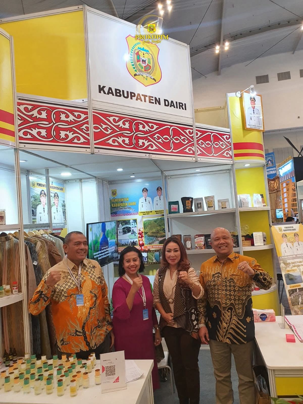 Bupati Dairi Ir. Vickner Sinaga M.M didampingi Ketua TP. PKK Kabupaten Dairi, Ketua DPRD Kabupaten Dairi Sabam Sibarani S.Sos dan Kepala Dinas Perindagkop UKM Kabupaten dairi Iwan Taruna Berutu mengikuti Bussines Matching Dairi membawa Kopi asli Dairi, Nilam dan Sereh wangi.