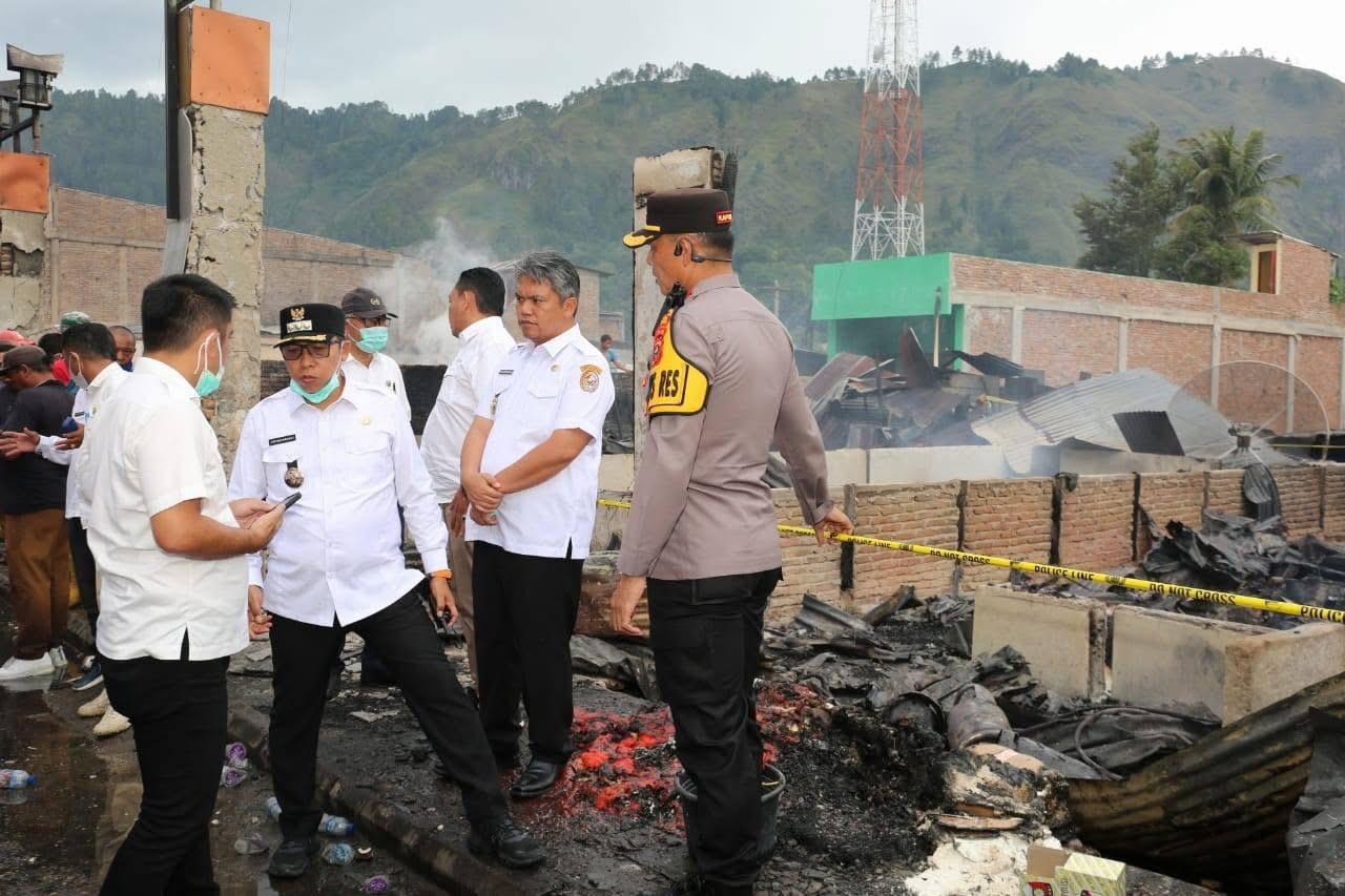 SUMUT.mediaipk.com – Bupati Tapanuli Utara bersama Wakil Bupati Dr. Jonius Taripar Parsaoran Hutabarat, S.Si, M.Si dan Dr. Deni Lumbantoruan, M.Eng didampingi Kapolres Tapanuli Utara AKBP Ernis Sitinjak dan beberapa Pimpinan OPD meninjau langsung lokasi kebakaran yang terjadi di Pasar Muara, Desa Hutanagodang, Kecamatan Muara, Kabupaten Tapanuli Utara, (Rabu, 26/03/2025).