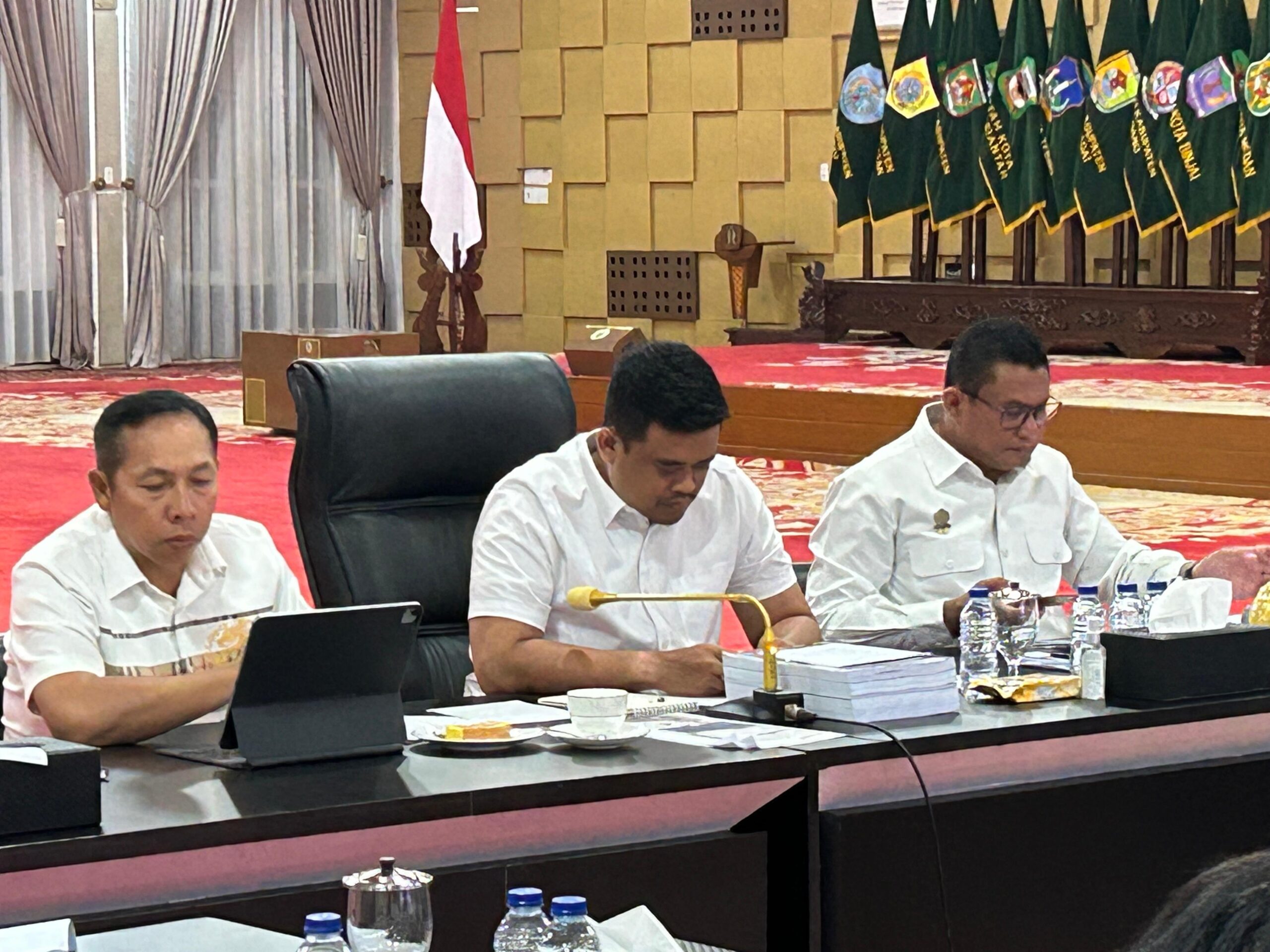 Sumatera Utara – Bupati Tapanuli Utara Dr. Jonius Taripar Parsaoran Hutabarat, S. Si, M. Si bersama Gubernur Sumatera Utara (Gubsu) Moh. Bobbi Afif Nasution menghadiri Rapat Koordinasi Lanjutan Pembahasan Pembangunan Hunian Tetap (Huntap) pasca bencana di wilayah Sumatera secara hybrid bertempat Aula Tengku Rizal Nurdin Rumah Dinas Gubsu, Medan. (Minggu, 28 Desember 2025).