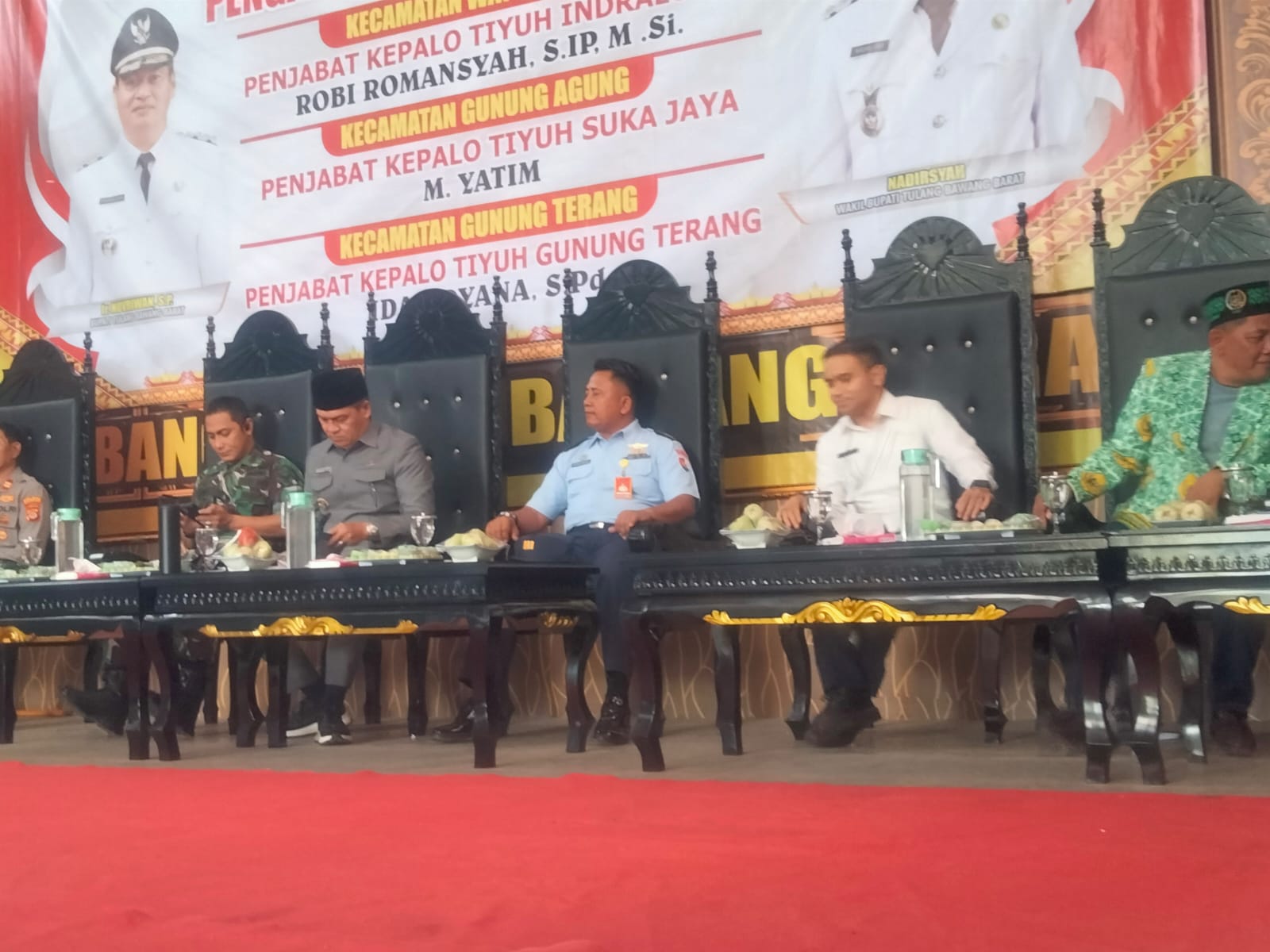 Hadir dalam acara tersebut, Bupati Tulang Bawang Barat, Novriwan Jaya, Kapolres Tulang Bawang Barat yang diwakili oleh Kapolsek Gunung Agung IPTU Amirudin SH, Dandim 0412/LU Letkol INF. Roni Faturahman, Para Pejabat Forkopimda Kabupaten Tulang Bawang Barat, Camat Gunung Agung, Wahyudi Alamsyah, SKM, MM, Camat Way Kenanga, Robi Romansyah, S.IP, M.SI, Camat Gunung Terang, para Kepala Tiyuh se-Kecamatan Way Kenanga, Kepala Tiyuh se-Kecamatan Gunung Agung, dan seluruh Kepala Tiyuh se-Kecamatan Gunung Terang, Kapolsek Lambu Kibang yang diwakili oleh, Ka,Sub, Sektor Way Kenanga IPDA Dian Purnama, para perwakilan BPT se-Kecamatan Way Kenanga, dan sejumlah tamu undangan lainnya.