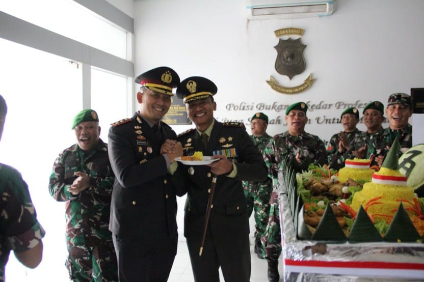 Bogor – Dalam rangka memperingati Hari Bhayangkara ke-79, Komandan Kodim 0621/Kab Bogor Letkol INF Henggar Tri Wahono, S.H., M.H. di dampingi jajaran staf kodim bersama para Danramil Jajaran Kodim 0621/Kab Bogor memberikan “Special Surprise” (kejutan istimewa), kepada Kapolres Bogor sebagai wujud nyata sinergitas dan soliditas antara TNI dan Polri.