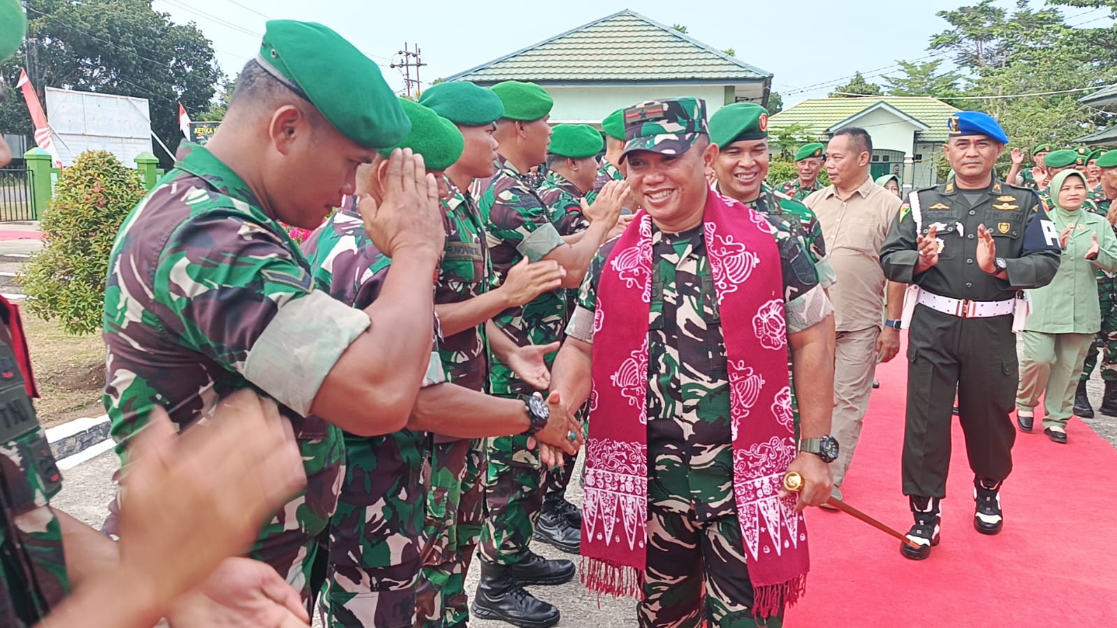 Kedatangan Danrem 041/Gamas beserta rombongan disambut langsung oleh Dandim 0428/Mukomuko, Letkol Inf Yokki Firmansyah, beserta jajaran. Acara penyambutan diawali dengan laporan dari Dandim, hormat jajar, dan pengalungan selendang oleh perwakilan prajurit.