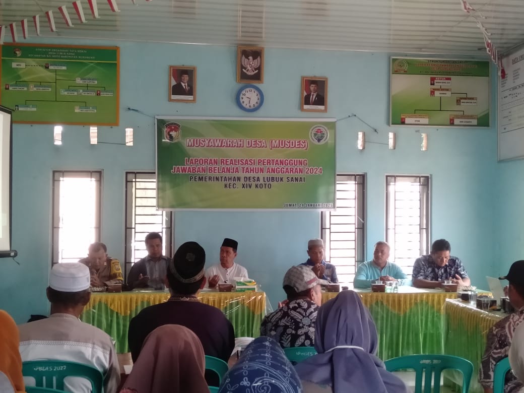 Mutriadi Kepala Desa Lubuk Sanai menyampaikan, sangat berterima kasih kepada seluruh masyarakat Lubuk Sanai atas sumbangsih kerja sama nya atas saran pendapat dalam realisasi pertanggung jawaban APBDES dalam tahun 2024 dapat diterima dan dipertanggung jawabkan oleh kami pemerintahan desa