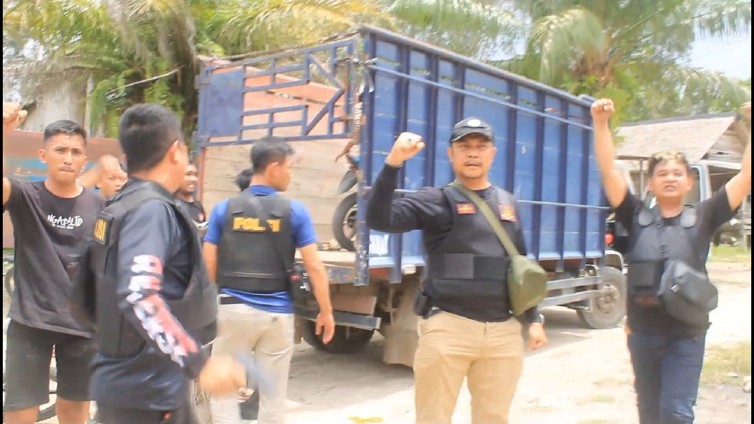 Mesuji – Dramatis saat penggerebekan di sebuah rumah yang diduga milik bandar narkoba jenis sabu, di Desa Talang Batu, Kecamatan Mesuji Timur, Kabupaten Mesuji pada Kamis siang, penggerebekan tersebut Polisi menggunakan kendaraan truk guna menghilangkan kecurigaan pelaku saat masuk ke desa tersebut. (16/10/2025)