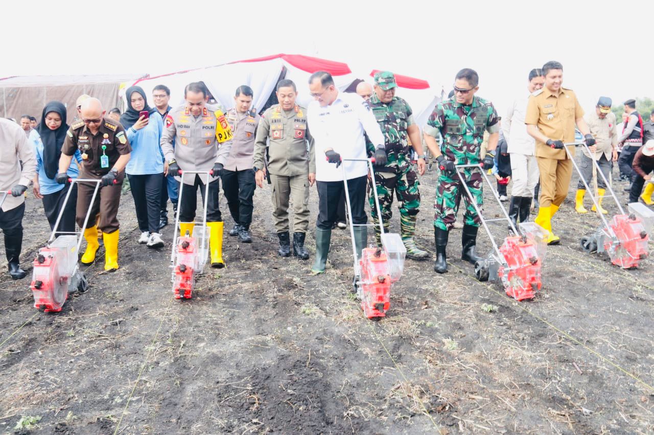 PALEMBANG,IPK.Com – Polda Sumsel dan jajaran turut melakukan penanaman jagung serentak 1 juta hektare, dalam rangka mendukung swasembada pangan tahun 2025, pada Selasa (21/1/2025) dengan luas sebaran di seluruh wilayah Sumsel, penanaman jagung kemarin di lahan total seluas 761 hektare.