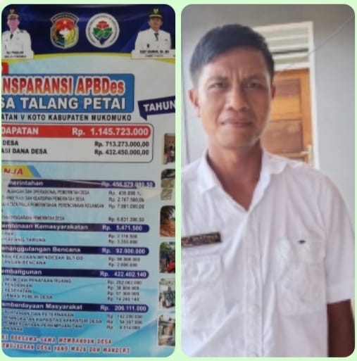 Mukomuko – Dugaan penyalahgunaan anggaran keuangan Kebun Masyarakat Desa (KMD) di Desa Talang Petai, Kabupaten Mukomuko memanas. Pada Senin, 26 Mei 2025, jam 13.40 WIB, Kepala Desa Talang Pentai, Martinus, menyangkal tuduhan tidak transparan dalam pengelolaan dan penjualan hasil kebun masyarakat desa tersebut.
