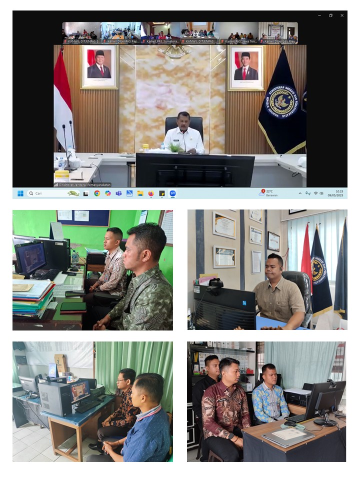 Tarutung, Sumut – Rumah Tahanan Negara Kelas IIB Tarutung ikuti kegiatan arahan langsung dari Direktur Jenderal Pemasyarakatan, Mashudi. Kegiatan tersebut di hadiri Kepala Rutan Kelas Tarutung, Evan Yudha Putra Sembiring, Kasubsi Pelayanan Tahanan, Jonias B. Pakpahan, Kasubsi Pengelolaan, Mian H.R. Simarmata, Kepala Kesatuan Pengamanan Rutan, James Bond Naibaho dan staf secara virtual melalui aplikasi zoom meeting, Jumat (9/5).