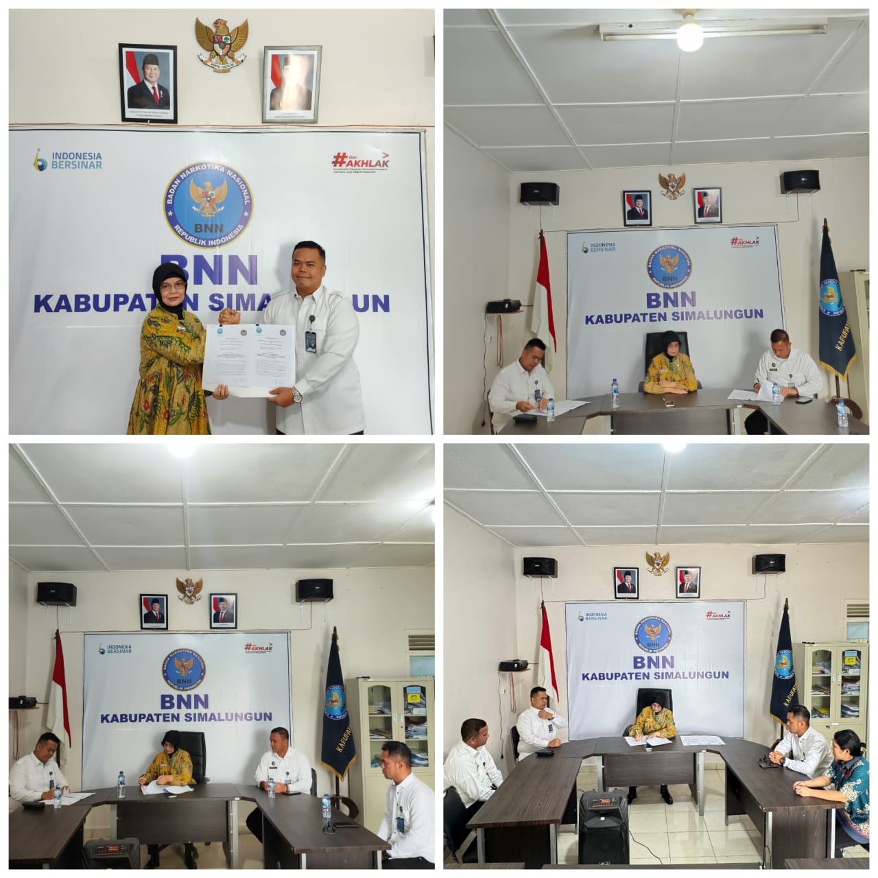 Kegiatan yang berlangsung di Kantor Badan Narkotika Nasional Kab. Simalungun, Jalan Sudirman Kelurahan Pematang Raya, Kabupaten Simalungun,Sumatera Utara ini dihadiri oleh Kepala Rutan Tarutung, Evan Yudha Putra Sembiring di dampingi Kasubsi Pelayanan Tahanan, Jonias B. Pakpahan, serta dihadiri langsung oleh Kepala Badan Narkotika Nasional Kab. Simalungun, Ibu AKBP Suhana Sinaga, S.Kom., M.Si. Turut hadir dalam kegiatan tersebut, Kepala Lembaga Pemasyarakatan Kelas IIB Siborongborong, Herry H. Simatupang.