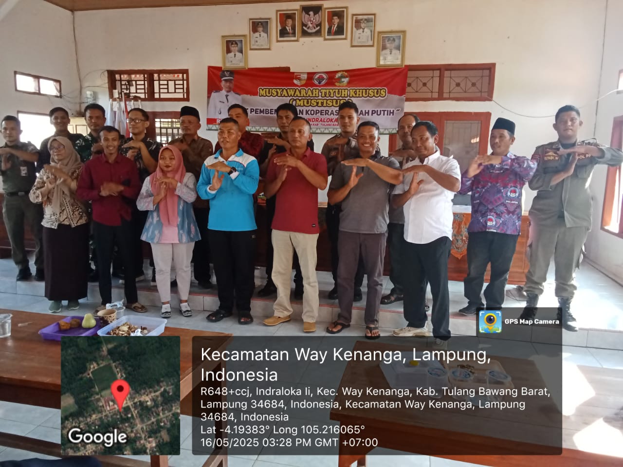 Tubaba Lampung – Pemerintah Tiyuh indraloka Jaya, Kecamatan way kenanga, Kabupaten Tulang Bawang Barat, menggelar Musyawarah Tiyuh Khusus pembentukan Koperasi Tiyuh Merah Putih pada Minggu (16/05/2025)