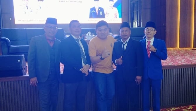 Ketua forum media mitra desa M. Abbas Umar, ucapkan selamat kepada Ahmad Sohib terpilih sebagai ketua forum Kepala Desa Se Kabupaten Ogan Ilir.