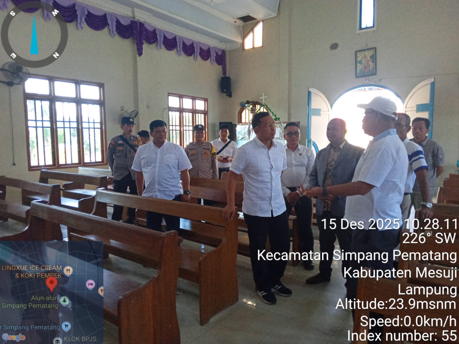 Setelah melakukan pertemuan di Mapolres, rombongan melanjutkan pengecekan ke Gereja HKBP yang berada di Desa Simpang Pematang, Kecamatan Simpang Pematang. Selain itu, tim juga meninjau jalur lalu lintas yang akan dilalui oleh para pengendara selama periode Nataru.