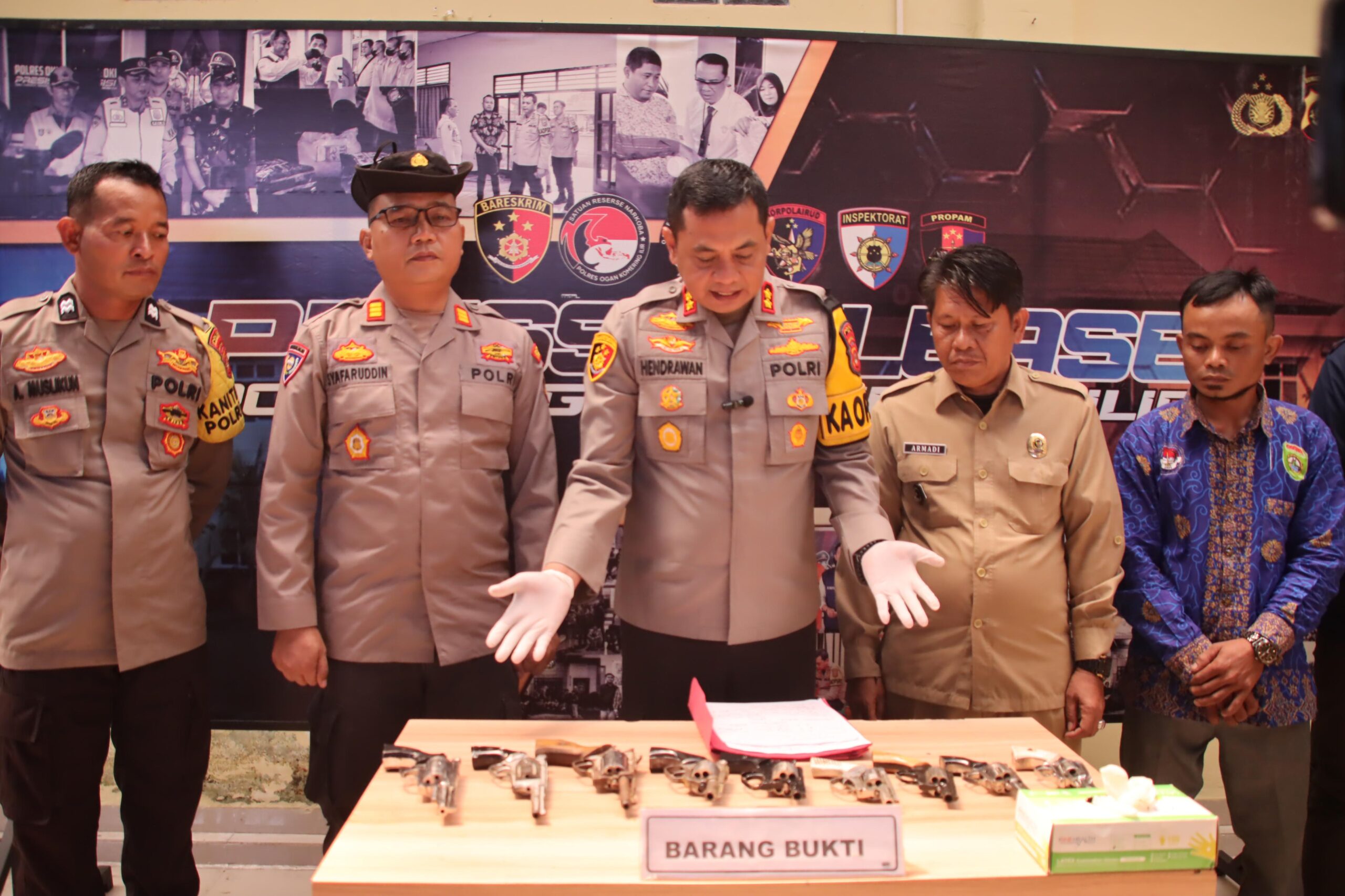 Kapolres OKI AKBP Hendrawan Susanto dalam konferensi pers, Jumat (7/2/2025), menyampaikan bahwa tindak kejahatan yang melibatkan penggunaan senjata api rakitan masih terjadi di wilayah Kabupaten OKI, termasuk kasus penganiayaan dan pencurian dengan kekerasan.