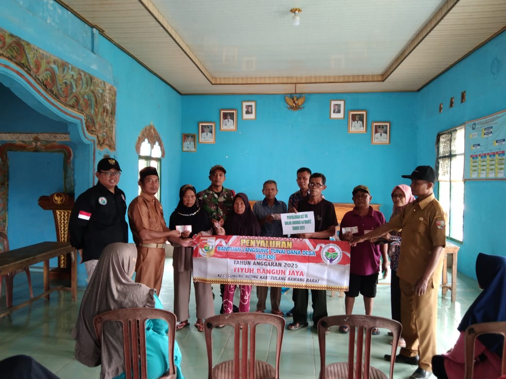Tulang Bawang Barat – Pemerintah Tiyuh Bangun Jaya bagikan BANTUAN LANGSUNG TUNAI sebanyak 3 bulan yang dibagikan kepada 15 Kepala Keluarga Penerima Manfaat (KPM)