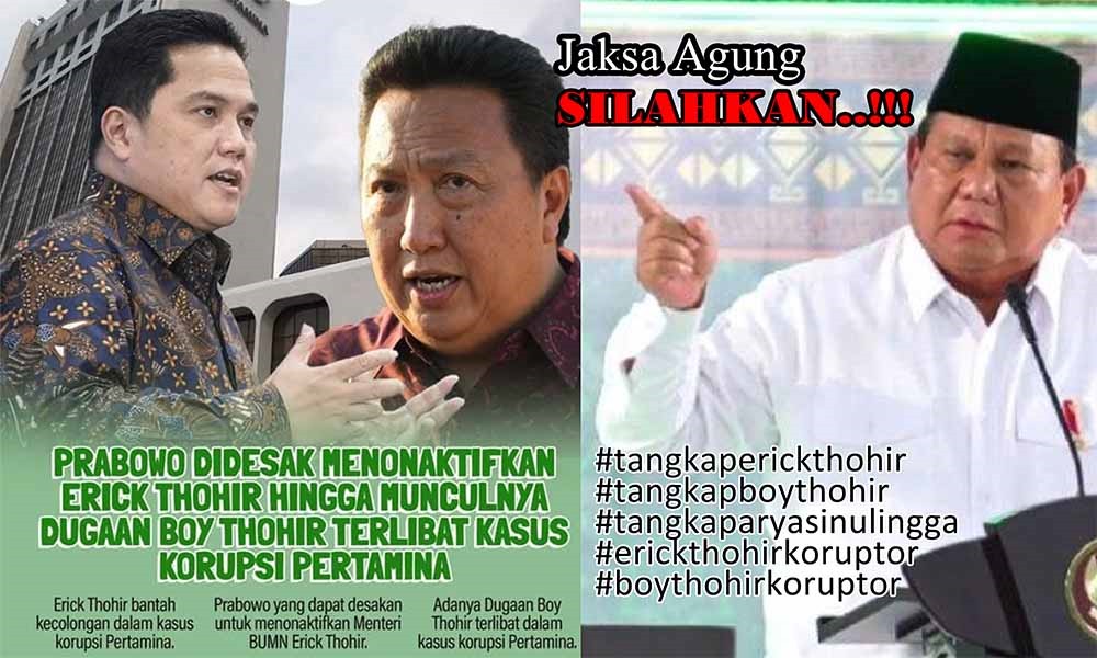 Yusri berharap Prabowo segera menonaktifkan Erick Thohir untuk membuka kasus oplosan Pertamax ini secara transparan.