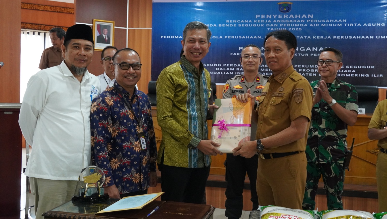 Pada acara ini juga dilakukan penyerahan Rencana Kerja Anggaran Perusahaan (RKAP) Tahun 2025 untuk Perumda Bende Seguguk dan Perumda Air Minum Tirta Agung, serta penandatanganan Fakta Integritas oleh jajaran direksi. Pj. Bupati menekankan pentingnya penerapan prinsip-prinsip Good Corporate Governance (GCG) dalam pengelolaan perusahaan daerah.