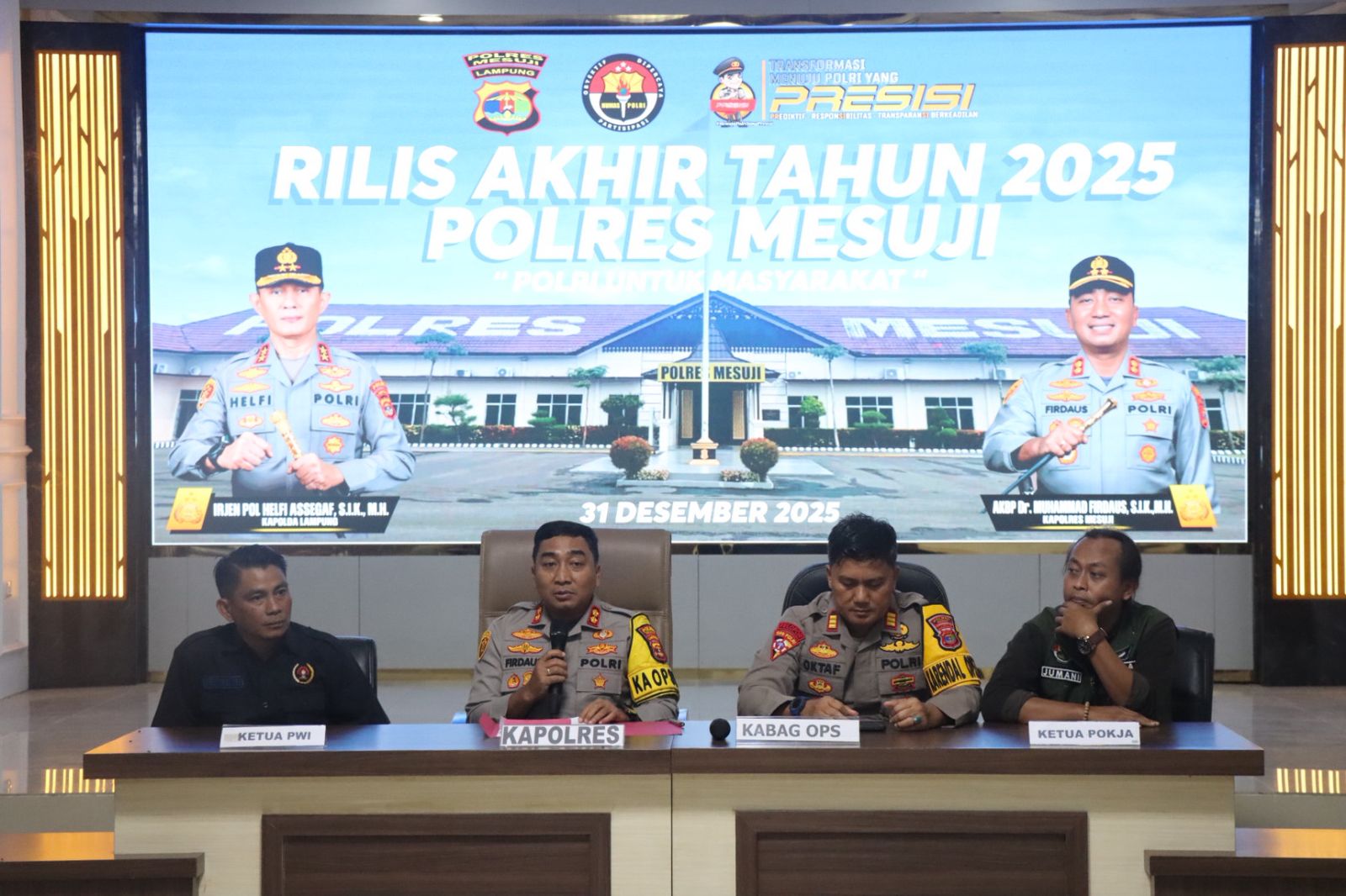 Pada kesempatan tersebut Kapolres Mesuji AKBP Dr. Muhammad Firdaus S.Ik, M.H memaparkan bahwasannya sepanjang tahun 2025 Polres Mesuji telah menunjukkan komitmen dan dedikasinya dalam melakukan ungkap kasus dan penyelesaian perkara.