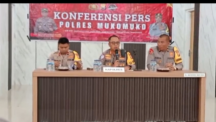 MUKOMUKO – Polres Mukomuko menggelar press release akhir tahun 2025 di Aula Mantap Praja Mapolres Mukomuko, Rabu 31 Desember 2025, menandai berakhirnya rangkaian tugas sepanjang tahun. Momentum ini menjadi ajang evaluasi dan penyampaian capaian kinerja kepada publik.