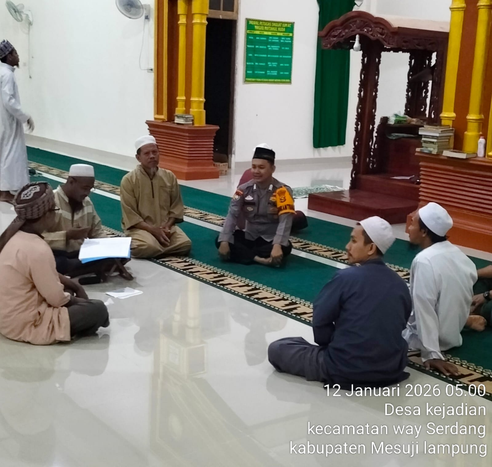 Mesuji – Dalam rangka mempererat tali silaturahmi dan menjaga sinergitas antara Masyarakat dan Polri Jajaran Polsek Way Serdang melalui Bhabinkamtibmas melaksanakan Colling Sistem safari subuh berjamaah di Masjid Agung Desa Kejadian Kecamatan Way Serdang Kabupaten Mesuji. Senin (12/01/25)