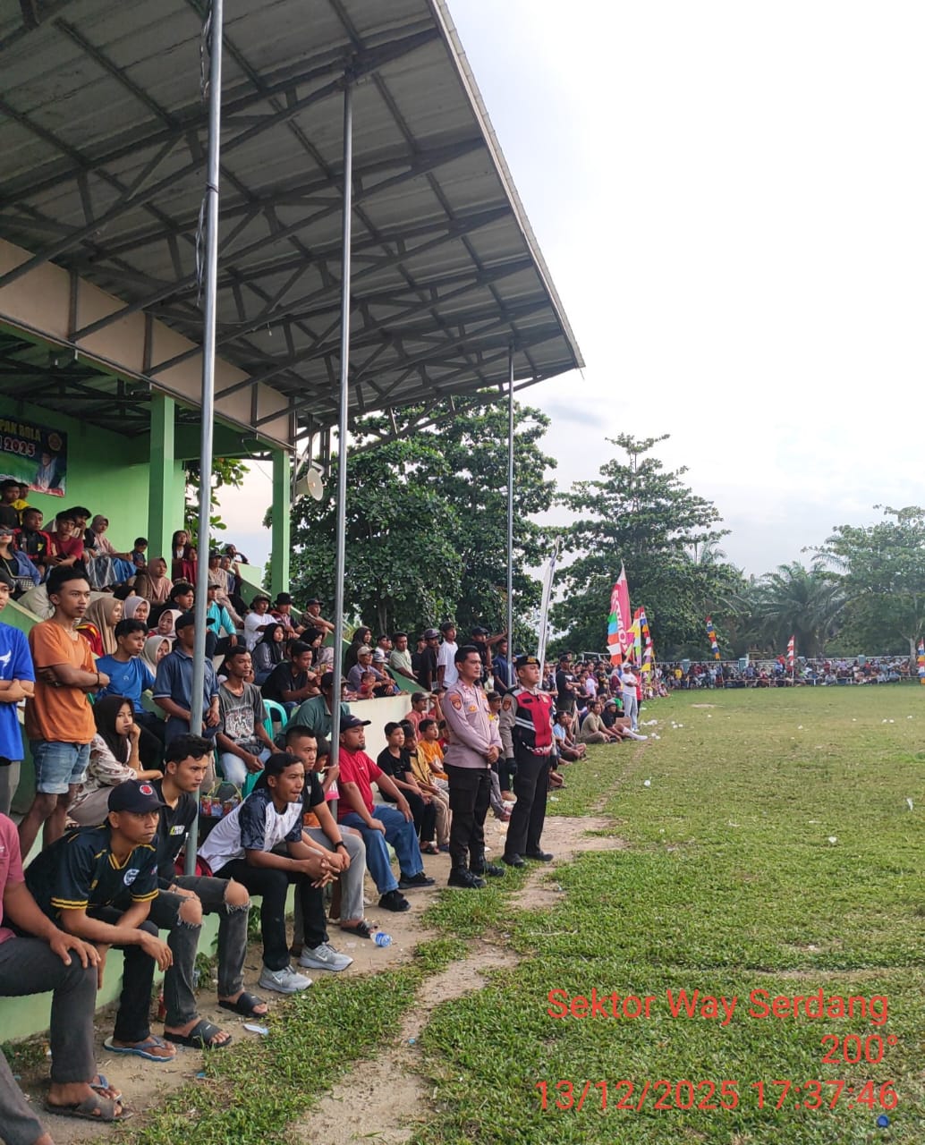 Mesuji – Kapolsek Way Serdang IPTU Dimas Afditiya Ramadhan, SE, MM, beserta jajaran melaksanakan Pengamanan terbuka dan tertutup Harkamtibmas dititik keramaian masyarakat dalam rangka turnamen Semi open sepak bola di lapangan Merdeka Desa Bukoposo, Kecamatan Way Serdang, Kabupaten, Lampung, pada Sabtu 13 Desember 2025.