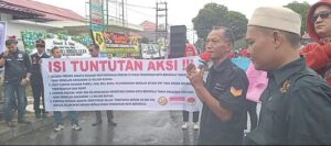 Aksi demo mendesak kejaksaan Negeri Bengkulu disambut langsung oleh Kasi Intelijen kejaksaan Negeri Bengkulu, Fri Wisdom S. Sumbayak. S.H.,M.H.