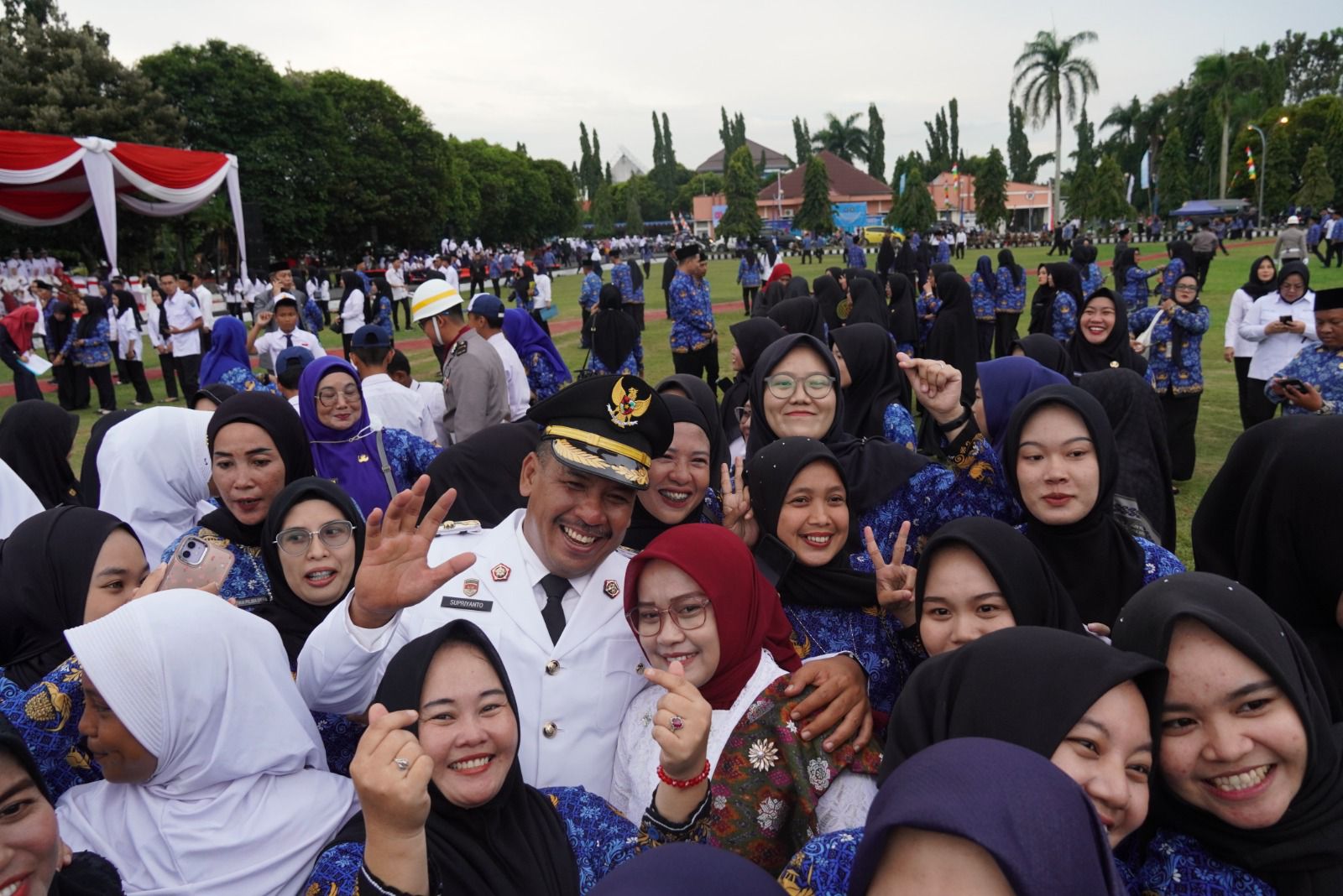 Wakil Bupati OKI, Supriyanto menyampaikan ucapan terima kasihnya kepada seluruh petugas dan peserta upacara.