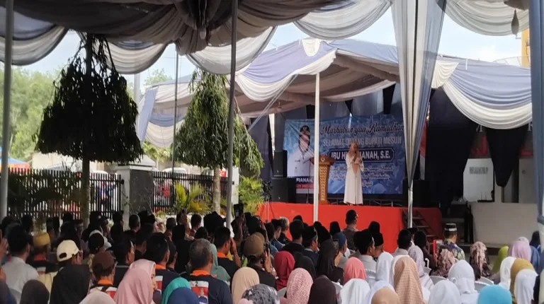 Mesuji Lampung – Relawan dan Masyarakat menyambut haru kedatangan Bupati Mesuji Hj. Elfianah dan Wakil Bupati Mesuji M. Yugi Wicaksono setelah pulang dari Retret Kepala Daerah di Akademi Militer (Akmil) di Magelang kembali ke Kampung halamannya Mesuji sekaligus buka bersama pada Sabtu”, (01/03/2025).