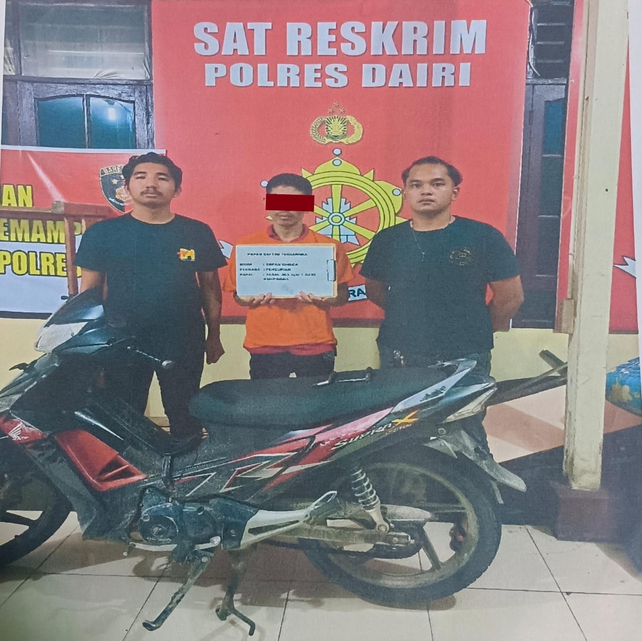 Dairi,IPK.Con – Sat Reskrim Polres Dairi menangkap pelaku pencurian sepeda motor yang terjadi di Desa Pegagan Julu VII Kecamatan Sumbul Kabupaten Dairi, Rabu (15/1/2025).
