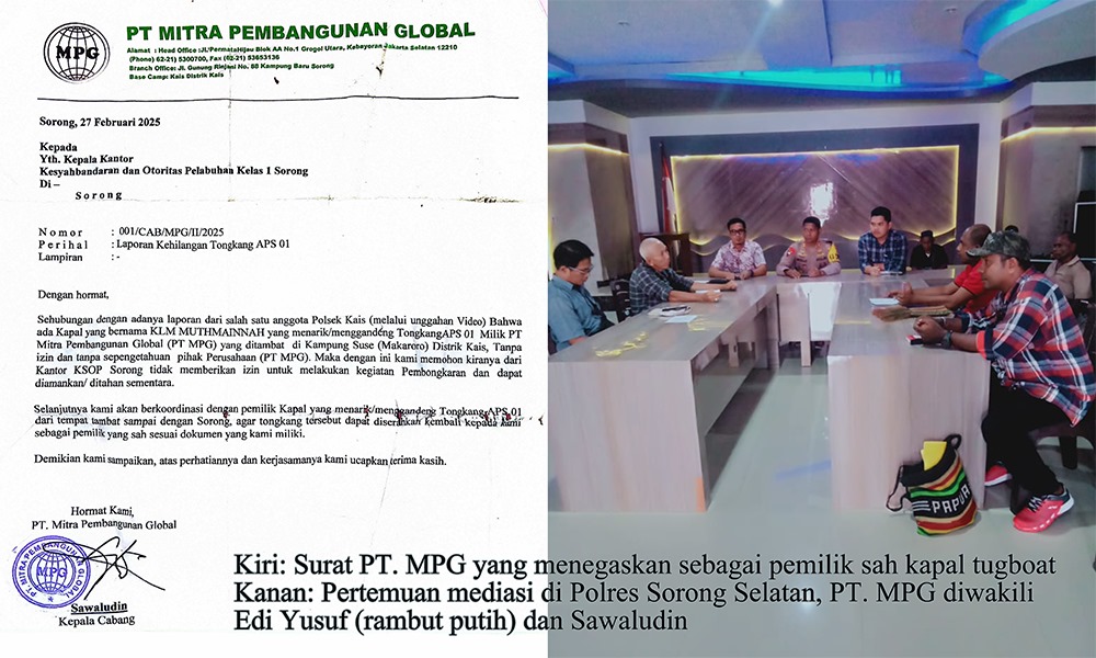 Sorong – Setelah ramai pemberitaan terkait sengkarut kapal tugboat yang sandar di Mapolda Papua Barat Daya, yang beroperasi sebagai galangan kapal dadakan illegal, muncul pernyataan seorang pengacara abal-abal bernama Yosep Titirlolobi, yang mengaku mewakili PT. Armada Prima Samudra (PT. APS). Yosep mengklaim dalam pernyataannya bahwa kapal bekas itu adalah milik PT. APS.