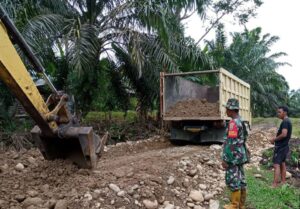 Sementara itu, di Desa Wono Salam, Kecamatan Lubuk Pinang, satgas melanjutkan proses pemerataan pengoralan jalan.