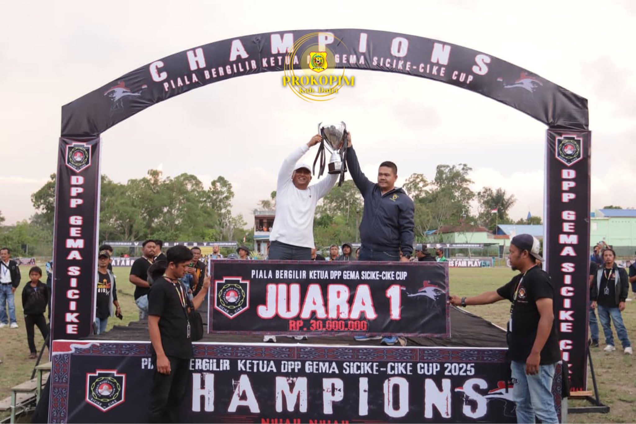Dairi,IPK.Com – Wakil Bupati Dairi, Wahyu Daniel Sagala, menghadiri secara langsung grand final Turnamen Sepak Bola Gema Sicike-Cike 2025 yang berlangsung meriah di Stadion Baru Kecamatan Sitinjo Kab.Dairi, Minggu (24/8/2025). Turnamen ini menjadi ajang bergengsi tahunan yang mempertemukan tim-tim terbaik dari berbagai wilayah di Kabupaten Dairi dan Kabupaten lainnya.