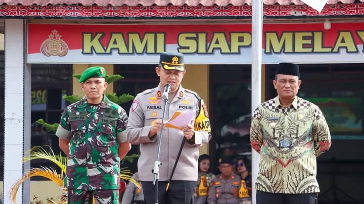 Kapolres Dairi AKBP Faisal Andri Pratomo memimpin apel pasukan ini sekaligus membacakan amanat Kapolri Jenderal Polisi Drs. Listyo Sigit Prabowo, M.Si.