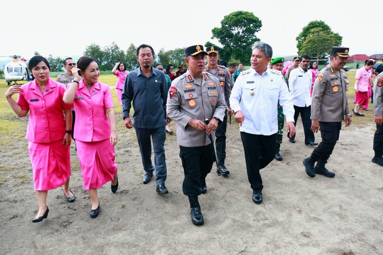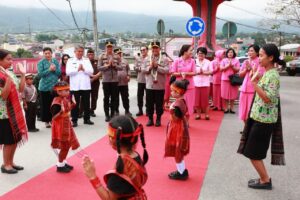 Tapanuli Utara, Sumut -;Wakil Bupati Tapanuli Utara Dr. Deni Lumbantoruan, M.Eng didampingi Ketua II Bidang Pendidikan dan Peningkatan Ekonomi Keluarga TP PKK Kabupaten Tapanuli Utara, Ny. Lisa Deni Lumbantoruan Br. Malau, menyambut kedatangan Kapolda Sumatera Utara, Irjen Pol Whisnu Hermawan Februanto, S.I.K., M.H., bersama Ketua Bhayangkari Daerah Sumatera Utara dalam kunjungan kerja di wilayah Kabupaten Tapanuli Utara, Rabu (30/04/2025).