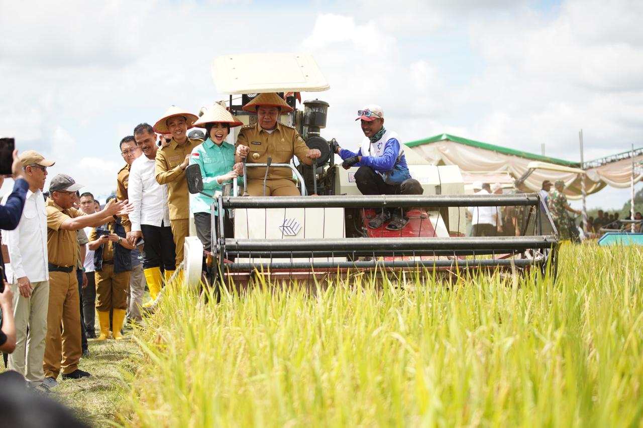 Panen raya dipusatkan di lahan pertanian Desa Cahya Maju, Kecamatan Lempuing OKI pada Senin (7/4/2025).