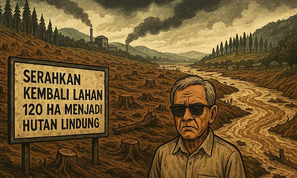 “Syahdan di tahun 60-70 an pemerintah kolonial Suharto memberi ijin HPH hak pembababtan hutan kepada kerabat Cendana, Bob Hasan untuk PT. APPI. Kayu bagus dibabat dibawa ke luar negeri lalu ditanami pinus. Pinus itu dipasok sebagai bahan baku untuk PT KKA (Kertas Kraft Aceh) di Krueng Geukuh Aceh Utara,” tulis Dayat melalui pesan WhatsApp-nya, Kamis, 18 Desember 2025.
